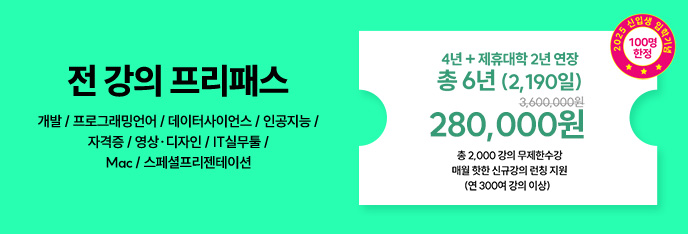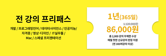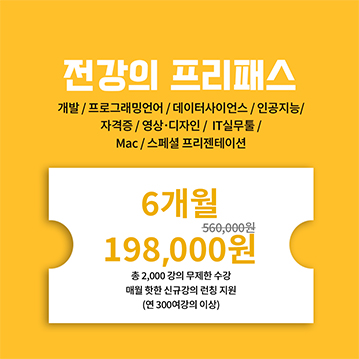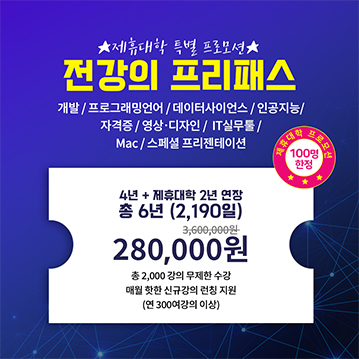 카테고리에 따라 강의를 찾아보세요.제휴대학생들은 프리패스 수강권으로 전강의를 무료로 수강 할 수 있습니다.