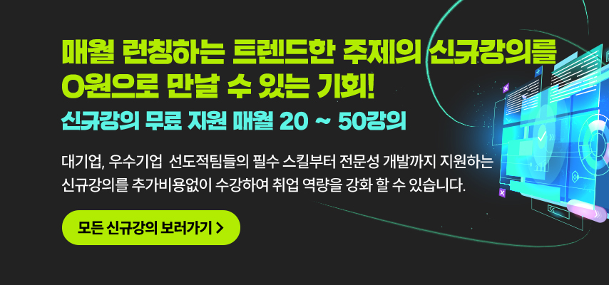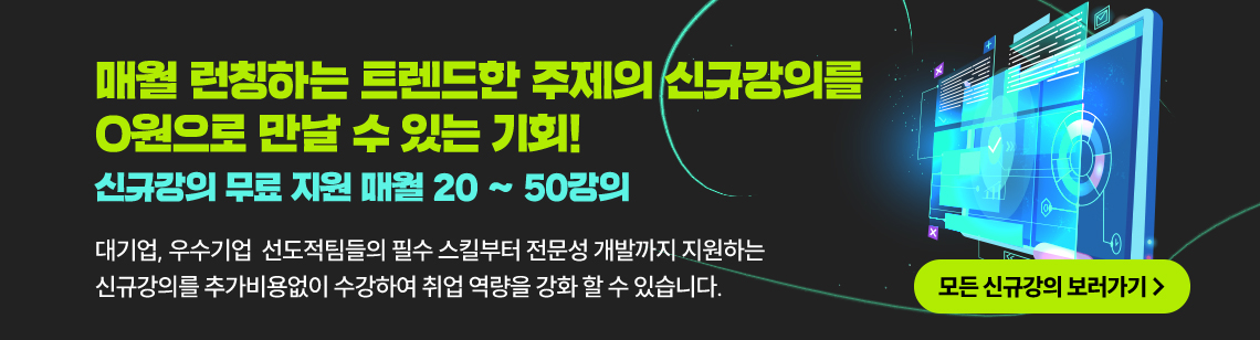 8월 신규 강의 OPEN !!! 트렌드 한 주제의 신규 강의를 매월 오픈 무료로 지원해드립니다!